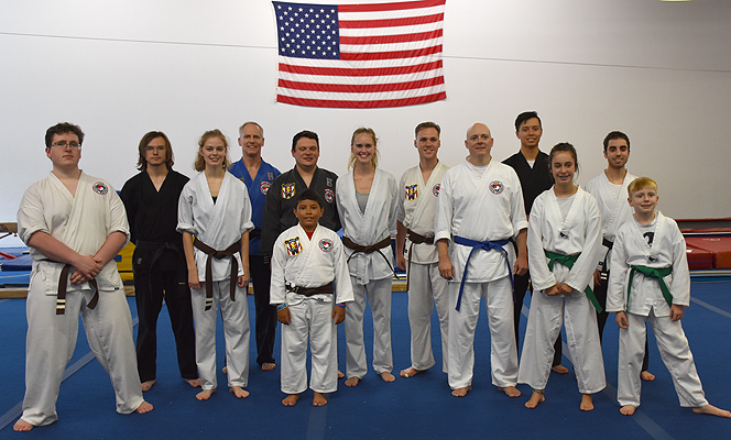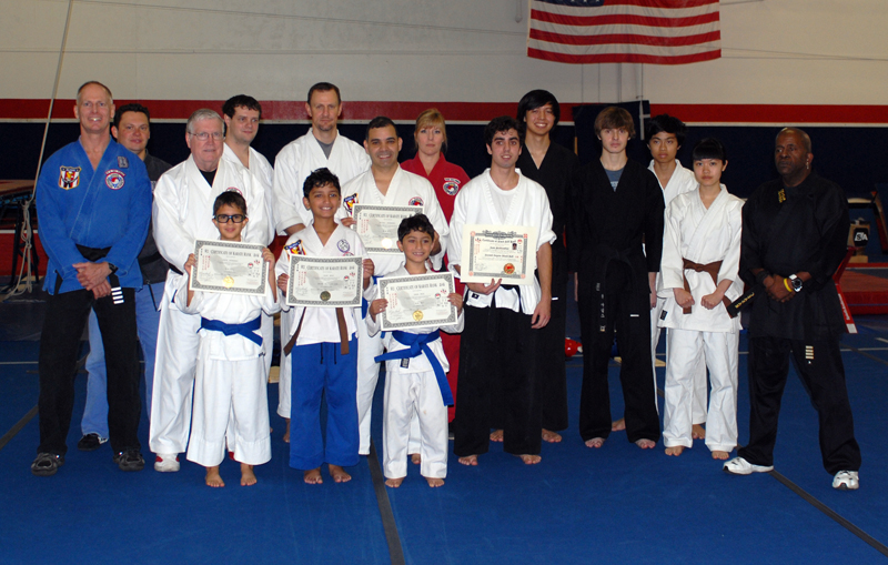 In addition to the 1st degree Black belts in the front row, Mr. Roark got his 4th-degree Black belt.