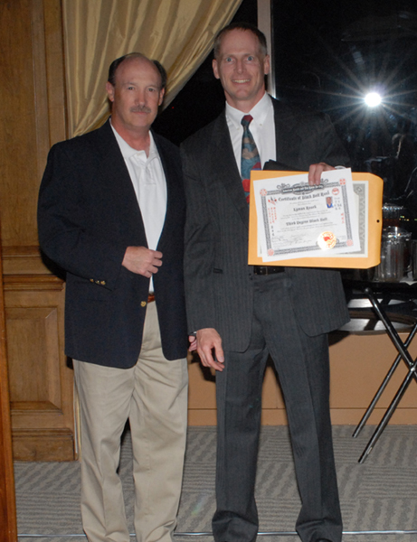 Dr. Thompson presents Mr. Roark with his certificate for 3rd degree.